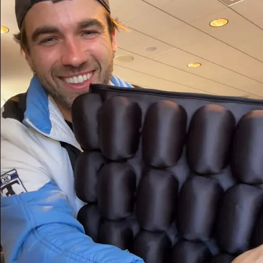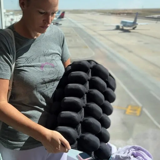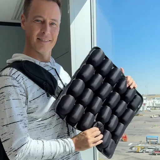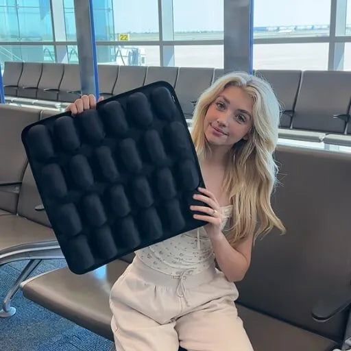 The travel cushion features 24 air cells that contour to and support your body, evenly redistributing pressure for exceptional comfort. Even on thin, uncomfortable seats, it feels soft and plush, allowing you to sit comfortably for hours without back, bottom, or tailbone pain.